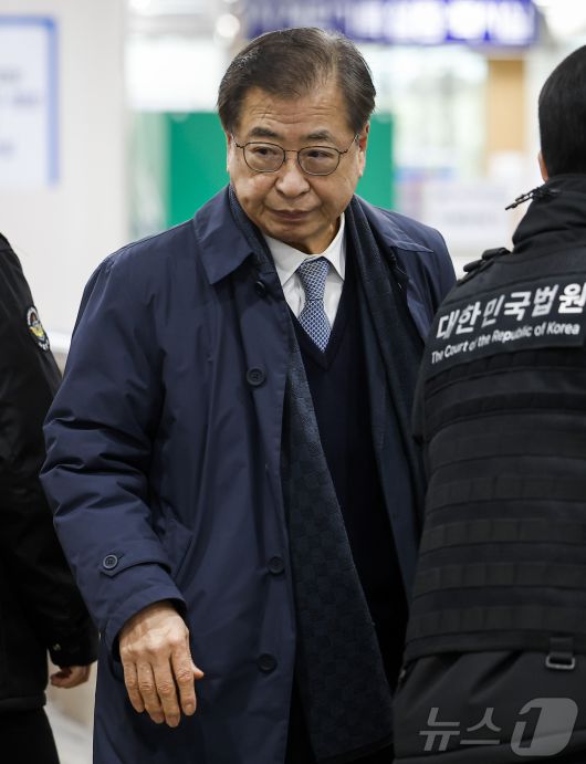 (서울=뉴스1) 오대일 기자 = '서해 공무원 피격 사건' 은폐 시도 및 '월북몰이' 혐의로 재판에 넘겨진 서훈 전 국가안보실장이 26일 서울 서초구 서울중앙지방법원에서 열린 선고기일에 출석하고 있다. (공동취재) 2025.12.26/뉴스1