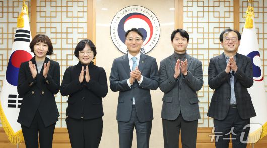 26일 서울지방국세청에서 열린 '2025년 우수 국선대리인' 선정식에서 참석자들이 기념촬영을 하고 있다(왼쪽부터 이광숙 납세자보호관, 최수진 변호사, 임광현 국세청장, 오관열 세무사, 김병욱 회계사. 국세청 제공). 2025.12.26/뉴스1 |