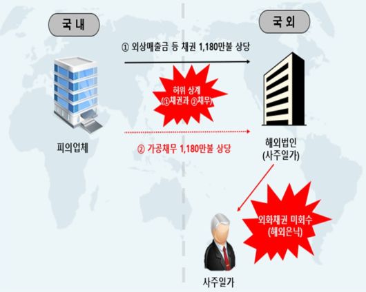 해외채권을 가공채무로 상계 후 해외 은닉(채권 미회수). 관세청 |