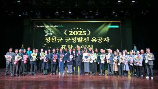 ▲정선군, 2025년 군정발전 유공자 표창 수여식 에서 19개 분야, 40명 군정발전 유공자 표창 수여 사진=정선군 |