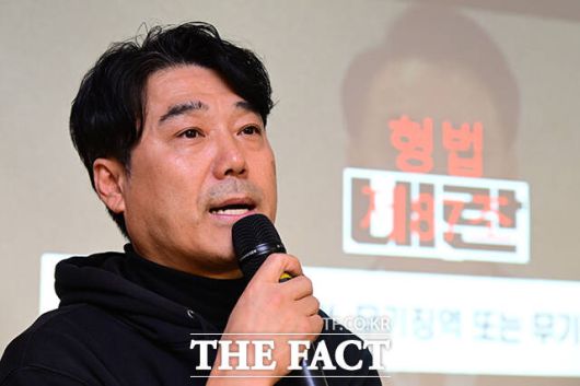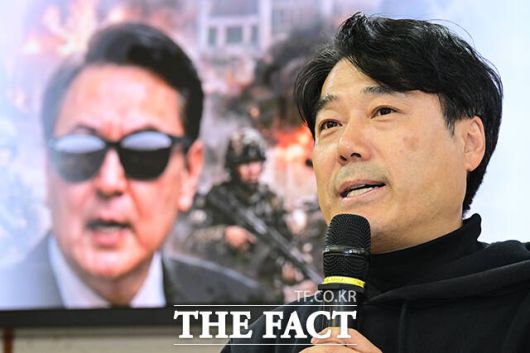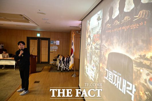 [더팩트ㅣ국회=남윤호 기자] 26일 오후 서울 여의도 국회 의원회관에서 열린 영화 '형법 제87조 내란' 제작발표회에서 메가폰을 잡은 김시우 감독이 작품 설명을 하고 있다.