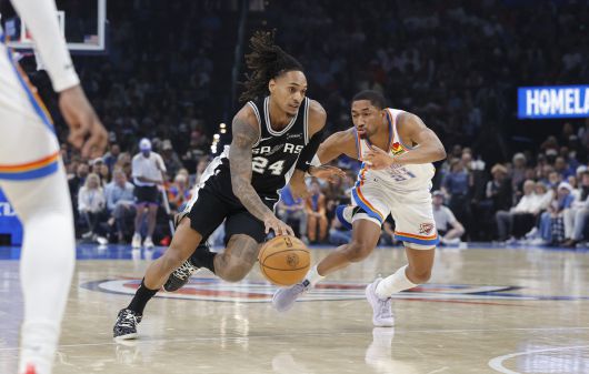샌안토니오가 사흘간 오클라호마시티를 연달아 만나 무너뜨렸다. 샌안토니오는 26일 미국 오클라호마주 오클라호마시티의 페이컴 센터에서 열린 2025~2026 NBA 정규리그 원정경기에서 오클라호마시티를 상대로 117-102로 승리하며 파죽의 8연승을 달렸다. 24일 홈 경기에서도 샌안토니오는 오클라호마시티를 130-110으로 꺾은 바 있다. 올 시즌 오클라호마시티가 2연패를 당한 건 이번이 처음이자 2경기 연속 15점 차 이상으로 패한 것도 리빌딩을 한창 진행하던 2021~2022시즌 이후 처음이다.