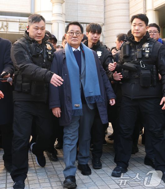 (서울=뉴스1) 오대일 기자 = '서해 공무원 피격 사건' 은폐 시도 및 '월북 몰이' 혐의로 기소된 박지원 전 국가정보원장이 26일 오후 서울 서초구 서울중앙지방법원에서 열린 '서해피격 은폐 의혹' 1심 선고 공판에서 무죄를 선고받은 후 법정을 나서고 있다. 2025.12.26/뉴스1