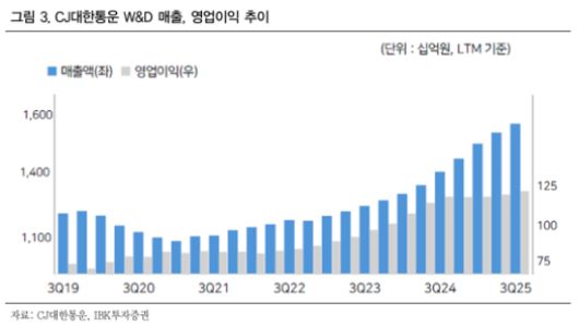 CJ대한통운 W&D 매출, 영업이익 추이. (자료=CJ대한통운, IBK투자증권 제공) |