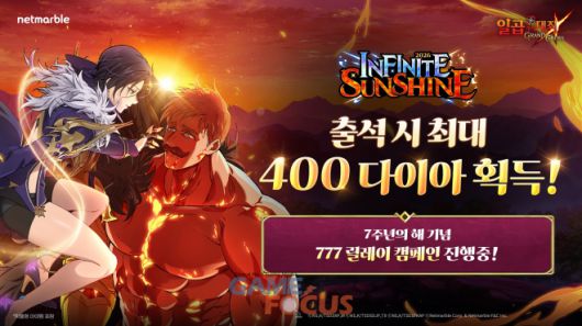 이와 함께 '777 릴레이 캠페인'을 진행한다. 2026년 6월까지 7개월동안 이어지는 '일곱 개의 대죄' 7주년 기념 7가지 특전 이벤트를 준비했으며, 다이아 100개 보상과 더불어 소환 더블 마일리지, 100회 리트라이 소환, 특별 쿠폰 보상 등 풍성한 혜택을 제공하며 매 월 새로운 혜택은 공식 사이트를 통해 공개될 예정이다.