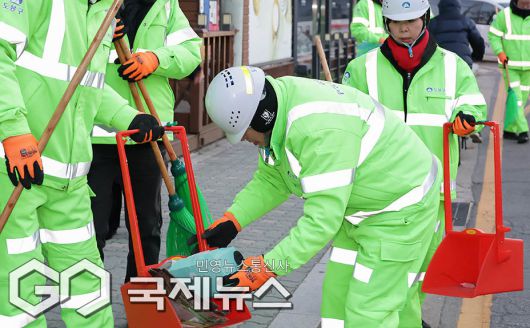 (서울=국제뉴스) 장동혁 국민의힘 대표가 26일 서울 도봉구 도봉산길 인근에서 열린 국민의힘 약자와의동행위원회 봉사활동 일환으로 가로청소를 하고 있다./국민의힘 제공