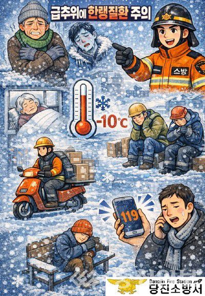 충남 당진소방서에 따르면 최근 기상청 예보를 통해 확인된 바와 같이 당진지역은 평년 대비 큰 폭의 기온 하강이 이어지고 있으며, 이에 따라 저체온증, 동상, 말초혈관 장애 등 한랭질환 발생 가능성이 높아진 상황이다.