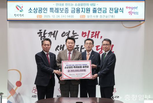 충남 당진시는 지난 24일 시청 접견실에서 오성환 당진시장과 김훈희 한국동서발전 당진발전본부장, 함종덕 하나은행 충남북영업본부 지역대표, 조소행 충남신용보증재단 이사장이 참석한 가운데, 소상공인 금융지원을 위한 '특례보증 출연금 전달식'을 개최했다고 26일 밝혔다.
