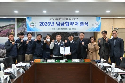 (장수=국제뉴스) 이재형 기자 = 장수군(군수 최훈식)은 군청 2층 회의실에서 전국공공운수노조 전국자치단체공무직본부 장수군지부(지부장 윤동수, 이하 '장수군 공무직지부')와 2025년 임금협약을 체결했다고 26일 밝혔다.