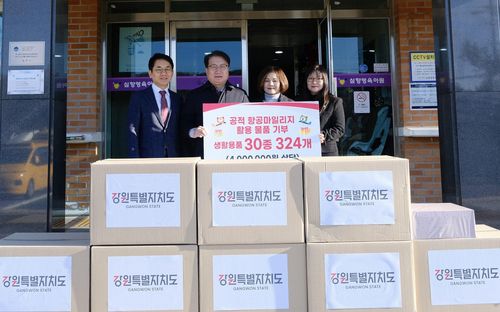강원도는 도청 직원들이 자발적으로 기부한 공적 항공마일리지를 활용해 400만원 상당의 생활용품 320점을 마련, 도내 아동복지시설에 26일 전달했다.