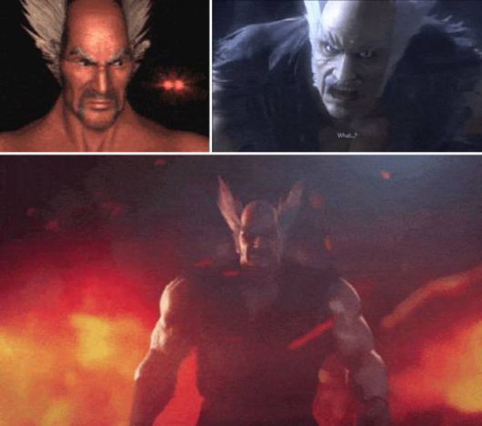 철권 1에서 미시마 진파치의 아들로 처음 등장한 '미시마 헤이하치'는 하치죠 가문의 카즈미와 결혼을 해서 '미시마 카즈야'를 아들로 얻게 되죠. 이후 카즈야를 절벽 아래로 던져 버리고.. 다시 카즈야가 복수를 해서 헤이하치를 절벽으로 던지고..