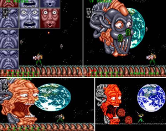 검떠: 그리고 이 게임의 하이라이트는 바로 라스트 보스! 고릴라 같은 사각형을 쏴서 없애고나면, 달에서 아주 거대한 얼굴이 라스트 보스로 등장합니다.