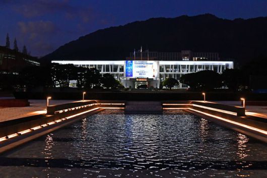 국립창원대학교 대학본부와 정문~대학본부 사이 '탁연지' 야경. (사진=국립창원대 제공) 2025.12.26. *재판매 및 DB 금지 |