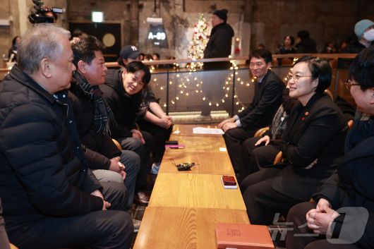 (서울=뉴스1) = 한성숙 중소벤처기업부 장관이 26일 서울 동대문구 경동시장을 방문해 청년 상인들과 차담회를 하고 있다. (중소벤처기업부 제공. 재판매 및 DB 금지) 2025.12.26/뉴스1urodoct2@news1.krCopyright ⓒ 뉴스1. All rights reserved. 무단 전재 및 재배포, AI학습 이용 금지.