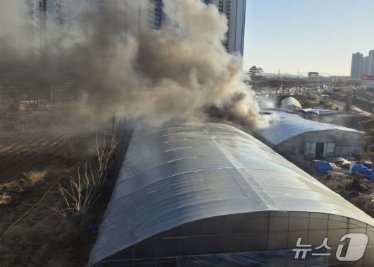 (안성=뉴스1) 김기현 기자 = 26일 오후 3시 38분 경기 안성시 공도읍 한 딸기 재배용 비닐하우스에서 불이 났다는 신고가 다수 접수됐다.