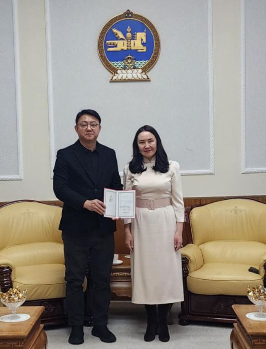 울란바토르에 위치한 몽골 정부궁에서 열린 이날 명예표창 수여식에는 친바트 온드람(Chinbat Undram) 문화체육관광청소년부 장관이 직접 참석해 김 의원의 공로를 치하했다. 온드람 장관은 “전세계적으로 인기를 끌고 있는 K-문화가 몽골 현지에 전파될 수 있도록 아낌없는 지원을 펼친 김춘곤 의원에게 경의를 표한다”며 “앞으로 양국 문화·체육·관광·청소년 분야의 교류에 더욱 매진할 수 있도록 힘을 모으자”고 말했다.