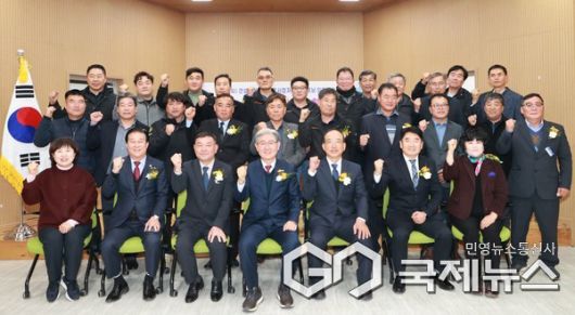 (의령=국제뉴스) 황재윤 기자 = 건설기계개별연명사업자협의회 경상남도 의령지회 제16대 구삼영 회장이 취임했다.