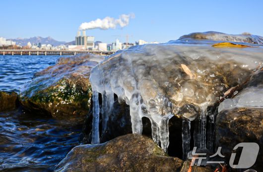 한낮에도 영하권 추위가 이어지는 26일 오후 서울 영등포구 여의도 인근 한강에 고드름이 얼어있다. 2025.12.26/뉴스1 ⓒ News1 김진환 기자 |