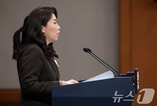 (서울=뉴스1) 이재명 기자 = 강유정 대통령실 대변인이 26일 청와대 춘추관에서 위험직무 순직 유가족 초청 오찬 관련 브리핑을 하고 있다. 2025.12.26/뉴스1