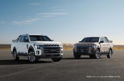 KG모빌리티의 차세대 픽업트럭 ‘무쏘’(오른쪽)와 선택 사양인 '그랜드 스타일'. KGM 제공 |