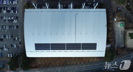 울산 문수실내수영장 지붕에 설치된 태양광 발전설비. (울산시설공단 제공. 재판매 및 DB 금지) /뉴스1 |