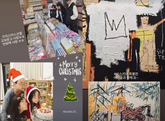 또한 소유진은 "바스키아 특별전, 아이들과 함께 또"라는 글과 함께 미술 전시를 관람하는 사진도 공개했다.