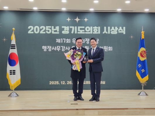 김정영 경기도의원(여성가족평생교육위원회, 국민의힘, 의정부1)은 26일 경기도의회 의장으로부터 ‘2025년 행정사무감사 우수의원’으로 선정되어 수상하였다.