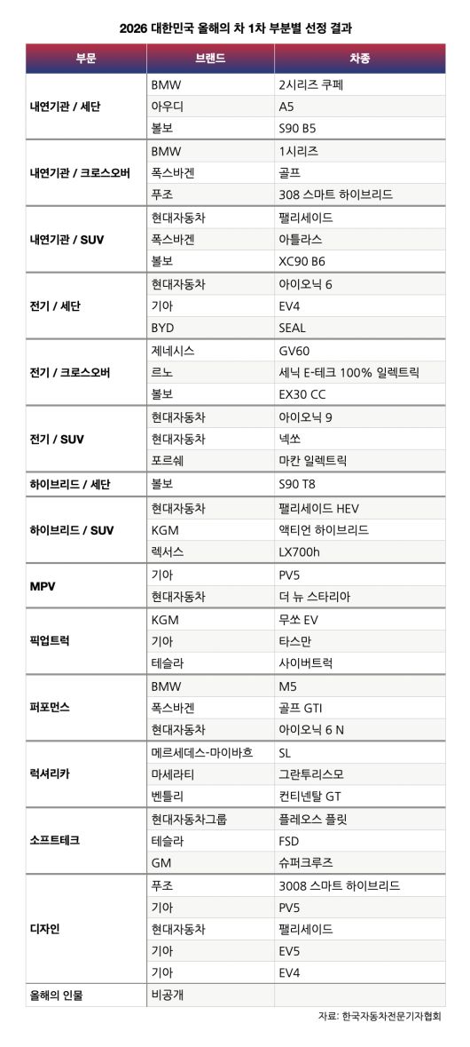‘2026 대한민국 올해의 차(이하 올해의 차)’ 부문별 후보가 선정됐다.
