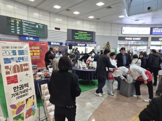 [서울경제TV 포항=김아연 기자] 포항시는 지역 특산물을 활용한 레시피 공모전을 통해 최종 5팀을 선정하고 지난 24일 포항역에서 시민과 방문객을 대상으로 무료 시식 행사와 함께 지역 농산물 소비 촉진 캠페인을 진행했다.