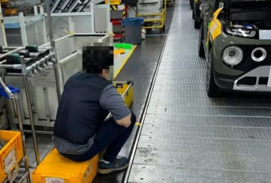 광주글로벌모터스 생산직 노동자가 간이의자에 앉아 쉬고 있다. 금속노조 광주전남지부 제공 |