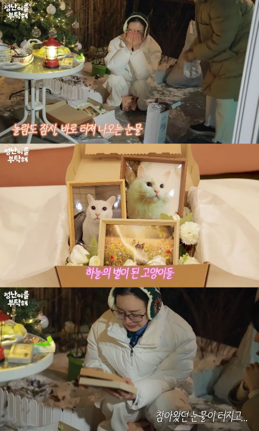 그러던 중, 김정난은 제작진이 준비한 마지막 선물에 결국 주저앉고 말았다. 그 선물은 바로 하늘의 별이 된 김정난의 반려묘 샤이니, 루루, 마리의 액자였던 것.