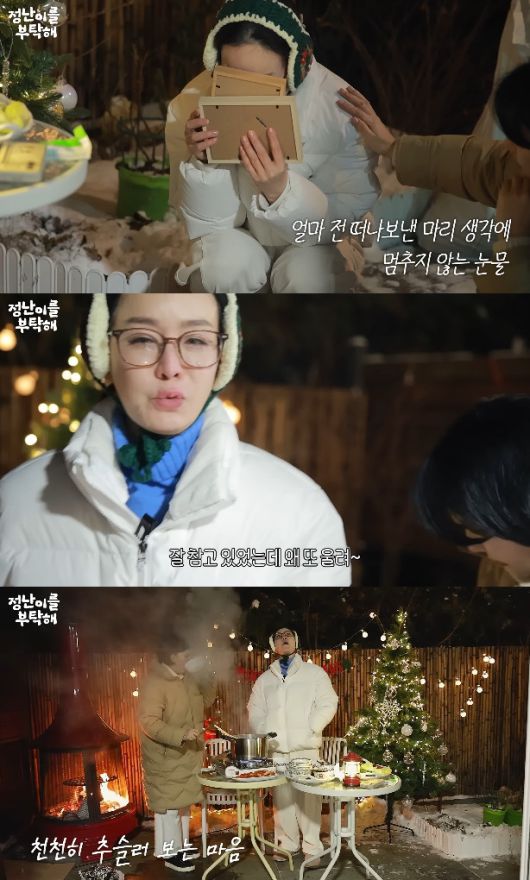 이날 김정난은 촬영일 기준 다가올 크리스마스를 앞두고 집 앞 마당에서 홈파티를 하기 위해 카메라를 켰다.