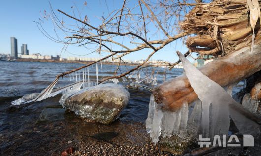 [서울=뉴시스] 김선웅 기자 = 서울 최저기온이 -12도를 기록하며 올해 첫 한파주의보가 발효된 26일 서울 서초구 반포동 한강변에 고드름이 얼어있다. 2025.12.26. mangusta@newsis.com |