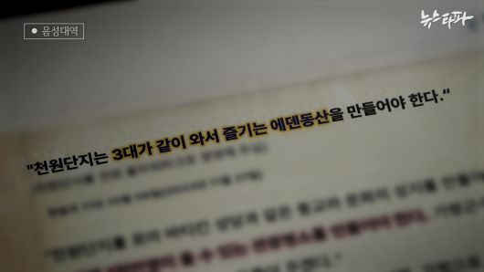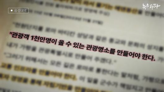 뉴스타파는 한주그룹의 내부 문건을 입수했다. 맨앞엔 '참어머님 말씀', 한학자 총재의 지시 사항이 적혀 있다. “천원단지를 로마 바티칸 성당과 같은 종교와 문화의 성지로 만들어야 한다”.