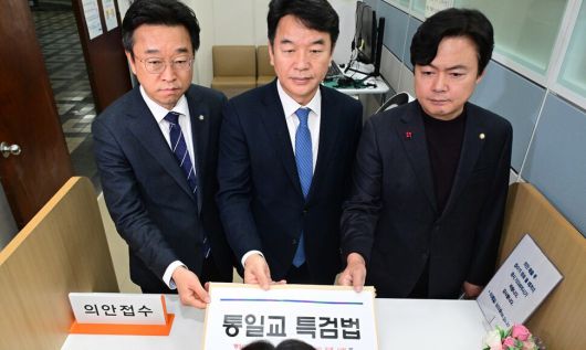 문진석 민주당 원내운영수석부대표와 이용우 원내부대표(민주당 법률위원장), 김현정 원내대변인은 이날 오후 국회 의안과를 찾아 ‘통일교와 신천지의 정치권 유착 및 비리 의혹 사건 등 진상규명을 위한 특별검사 임명 등에 관한 법률안’을 제출했다. 민주당 법안은 특검 추천 권한을 대한변호사협회와 사단법인 한국법학교수회, 사단법인 법학전문대학원협의회에 부여했다. 대통령이 이 단체들에 서면으로 특검 후보자 추천을 의뢰하면, 이 단체들은 의뢰를 받은 날로부터 사흘 안에 후보 1명씩을 추천해야 하고, 대통령은 추천을 받고 사흘 안에 후보자 중 1명을 특검으로 임명해야 한다.