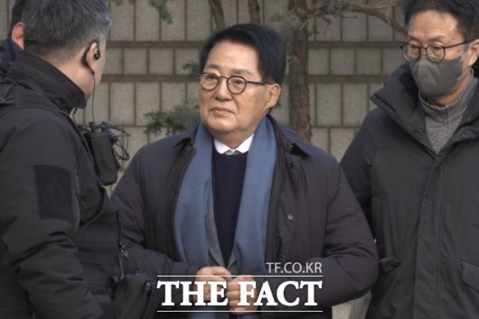 26일 오후 서울중앙지법. 형사합의25부(지귀연 부장판사)는 2020년 9월 서해에서 발생한 공무원 피격 사건을 은폐하려 한 혐의로 재판에 넘겨진 문재인 정부 안보라인 인사들인 서훈 전 청와대 국가안보실장, 박지원 전 국가정보원장(현 더불어민주당 의원), 서욱 전 국방부 장관 등 5명에 대한 선고기일을 열고 모두 무죄를 선고했다. 박지원 전 원장은 추운 날씨 속에서도 뜨거운 목소리로 감회를 밝혔다.