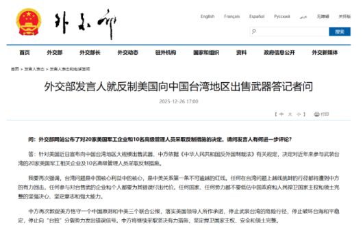 또, 대만 무기 판매에 관여한 기업과 개인은 반드시 대가를 치를 것이라고 경고하며, 미국에 하나의 중국 원칙과 미중 공동성명 준수, 대만 무장 중단을 촉구했습니다.