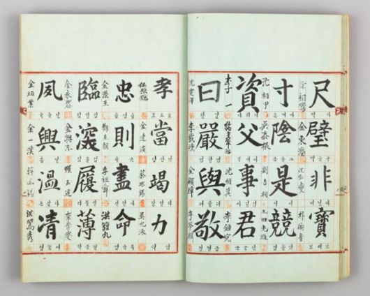 아이의 첫돌을 기념해 1,000명의 지인에게서 한 글자씩 받아 만들어 돌상에 올린 '천인천자문'. 국립민속박물관 제공 |