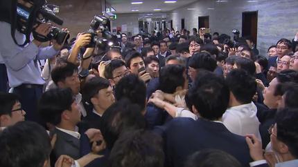 국민의힘 전신인 당시 자유한국당은 법안 상정을 막기 위해 회의장과 국회 의안과를 봉쇄했고, 더불어민주당 측에서는 회의장 진입을 시도하면서 몸싸움도 벌어졌습니다.