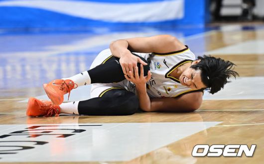 창원 LG 칼 타마요가 부산 KCC 이주영과 충돌해 고통스러워하고 있다. 2025.12.26 / foto0307@osen.co.kr