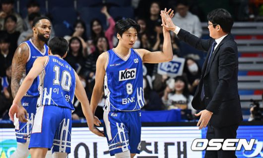 부산 KCC 윤기찬이 득점과 추가 자유투를 얻고 이규섭 코치와 하이파이브를 하고 있다. 2025.12.26 / foto0307@osen.co.kr