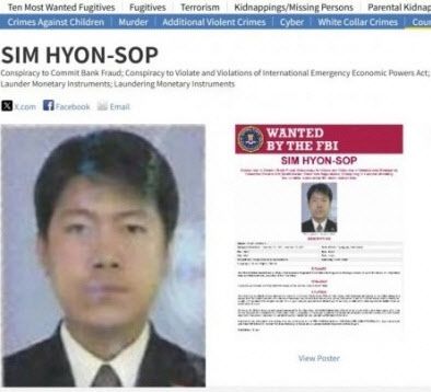 미 연방수사국(FBI)이 공개한 북한 자금세탁원 심현섭 수배포스터 한국어 버전.(사진=FBI) |