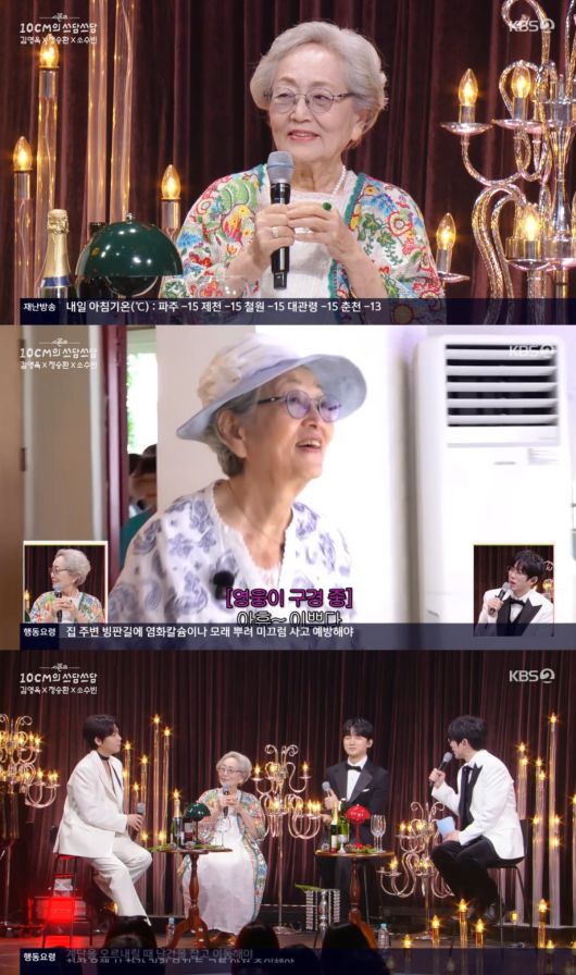 이날 십센치는 “요즘 선생님 께서 유튜브를 하신다. 덕분에 MZ 할머니라고 불린다. 유튜브에서 어떤 걸 하시냐”라며 김영옥에게 물었다.