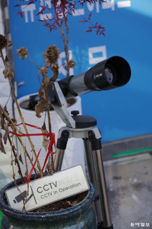 철통 감시 폐쇄회로(CC)TV를 작동하고 있다는 안내판 옆에 천체 망원경을 세워 놓았습니다. 하늘까지 들여다보겠다는 태세입니다. ―서울 동작구 노량진1동에서 변영욱 기자 cut@donga.com Copyright Ⓒ 동아일보. All rights reserved. 무단 전재, 재배포 및 AI학습 이용 금지