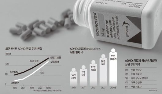 올 하반기 공급이 재개됐지만, 수요 급증 추세가 여전해 공급에 차질을 빚을 가능성은 여전히 존재한다. 콘서타는 카페인보다 훨씬 강력한 각성제로 작용하며, 주의력 결핍 환자의 집중력을 높이고 과잉 행동과 관련된 감정 조절 문제를 개선해 충동성을 조절한다. 이런 특징이 ‘집중력 높이는 약’ ‘공부 잘하는 약’으로 오인된 것이다. 식약처가 지난해 10대 환자들의 ADHD 약 처방이 많은 지역을 꼽아 보니, 교육열이 높은 서울 강남·서초·송파 등이 상위권에 꼽혔다. 중·고교생들이 인위적으로 집중력을 높이려고 무리하게 처방받은 것으로 추정하는 이유다.