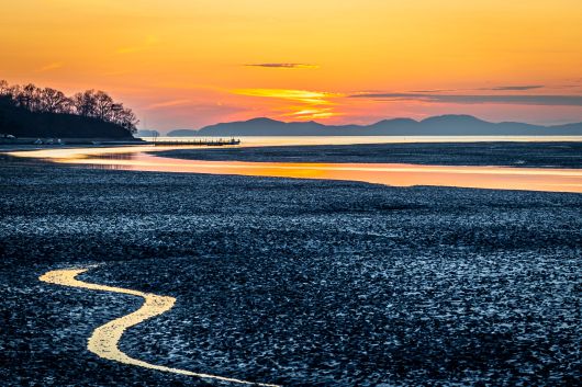 온종일 두 섬을 오가며 갯내를 흠뻑 입고 일상으로 복귀하는 길, 어둑해진 하늘이 걷히고, 갈라진 갯벌 사이로 바닷물이 모여든다. 반드시 다시 만나 고요해지는 바닷물처럼 새해, 새날은 조금 달라져 있기를.