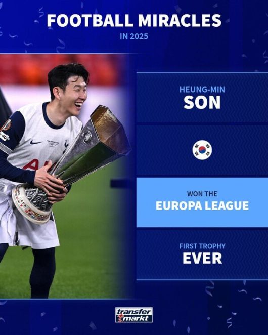 여기까지 소개된 건 ‘팀이 만들어 낸 기적’이었다. 그러나 트랜스퍼마크트는 지난 5월 열린 UEFA 유로파리그 결승전을 언급했는데 ‘토트넘 홋스퍼’의 우승이 아닌 ‘손흥민’의 우승을 기적으로 거론했다.