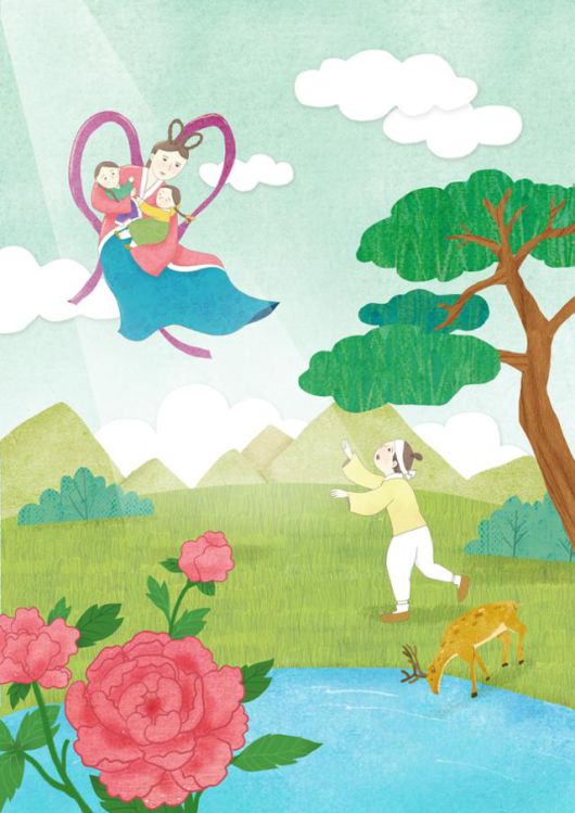 더 이상한 건 그다음입니다. 처음 보는 사슴마저 장가를 못 간 나무꾼을 안타깝게 여깁니다. 그리고 세 자매가 목욕하는 장면을 훔쳐보라고 권합니다. 나무꾼은 자신이 옷을 감췄다는 사실을 숨긴 채 울고 있던 선녀를 집으로 데리고 와 혼례를 올립니다. 결국 행복하게 살았으니 됐다고요? 아니요, 선녀는 옷을 되찾자마자 두 아이를 데리고 하늘로 떠납니다.