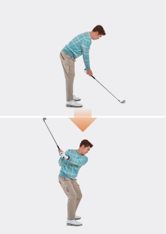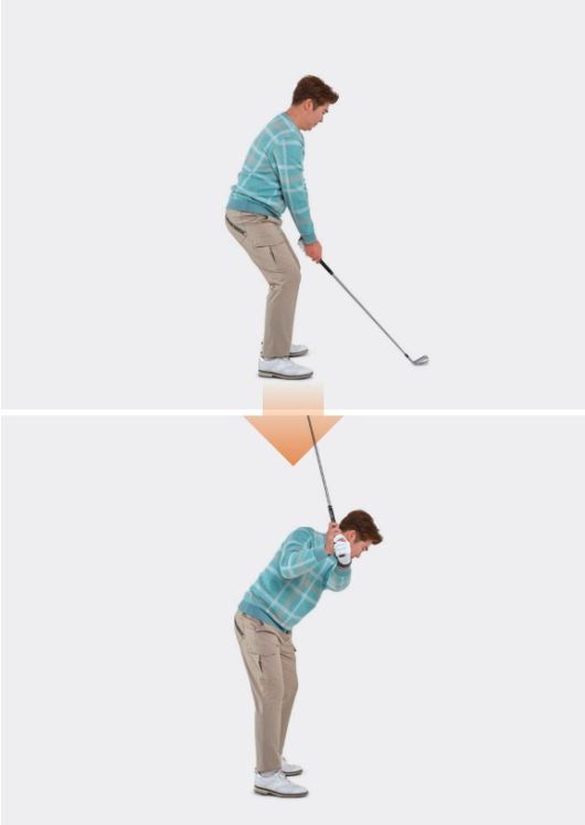 두 번째는 상체의 올바른 자세다. 중심점을 잘 찾아도 자세를 정확하게 하지 못하면 역시 스윙 밸런스가 깨진다. 특히 척추 각을 유지해야 하는데, 대부분의 프로 선수들의 경우 옆에서 봤을 때 어깨 라인이 발끝 부근에 떨어지는 것을 확인할 수 있다. 어드레스를 한 상태에서 양손이 허리 높이에 올 때까지 클럽을 정면으로 들어 올렸다가 허리가 펴진 상태를 유지하면서 클럽헤드를 지면으로 내려준다. 이렇게 하면 대체로 어깨 라인이 발끝 위쪽에 오게 될 뿐 아니라 골반이 저절로 숙여지기 때문에 무릎에서 골반, 골반에서 척추로 이어지는 매우 좋은 각도가 만들어진다.