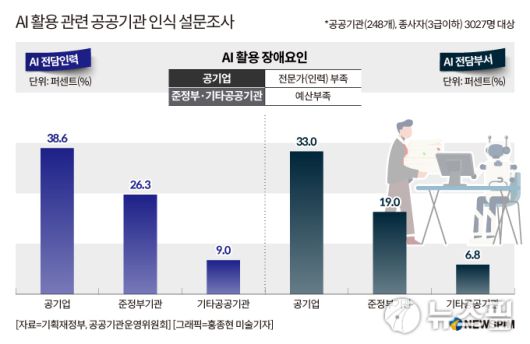 문형남 숙명여대 경영전문대학원 교수는 "공기업이 인력 부족을, 준정부기관이 예산 부족을 가장 큰 애로사항으로 꼽은 것은 매우 현실적인 결과"라며 "이는 단순히 사람과 돈의 문제가 아니라 'AI를 다룰 수 있는 구조와 역량이 준비되지 않았다는 신호'"라고 분석했다.